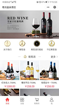 紹興葡尚皇家酒莊小程序是紹興魔方網(wǎng)絡(luò)科技有限公司2019年度開(kāi)發(fā)的微信小程序,小程序頁(yè)面設(shè)計(jì)時(shí)尚簡(jiǎn)潔,是愛(ài)品味紅酒和收藏紅酒購(gòu)買(mǎi)小程序,開(kāi)發(fā)了首頁(yè)商城、分類、購(gòu)物車、我的中心等等模塊。